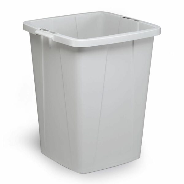 Neliön mallinen jäteastia jossa tukevat ergonomiset kahvat. Lisävarusteena saatavissa erivärisiä kansia sekä vaunu.