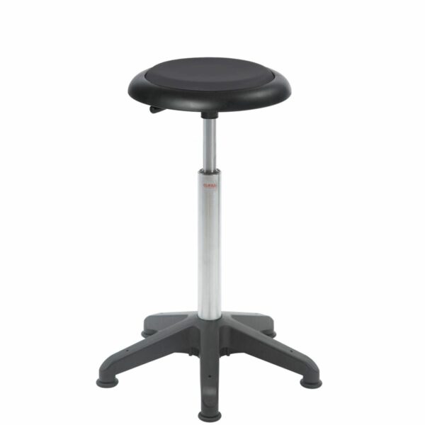 Mukava vaahtokumilla verhoiltu työjakkara. Tukeva jalkaristikko jossa liukunastat. Saatavissa sinisenä, punaisena tai mustana.