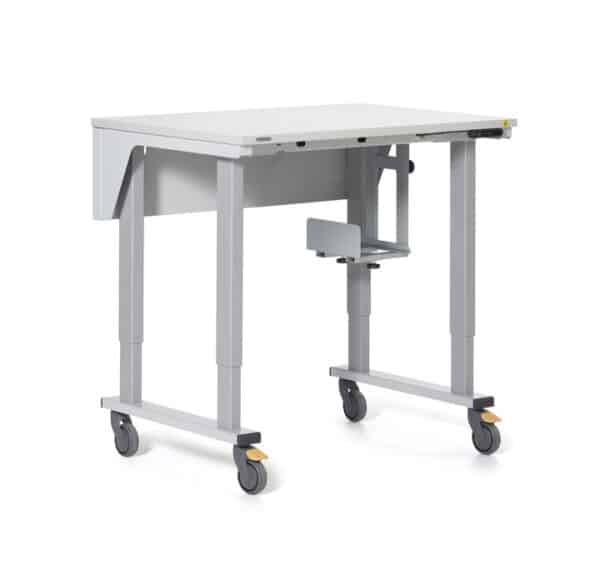 Lisävarusteilla työpiste on helppo sovittaa eri työtehtäviin. Sähköinen korkeudensäätö mahdollistaa mukavan työskentelyn istuen tai seisten ja eri käyttäjille. Kevyesti rullaavat pyörät tekevät siirtämisestä helppoa.